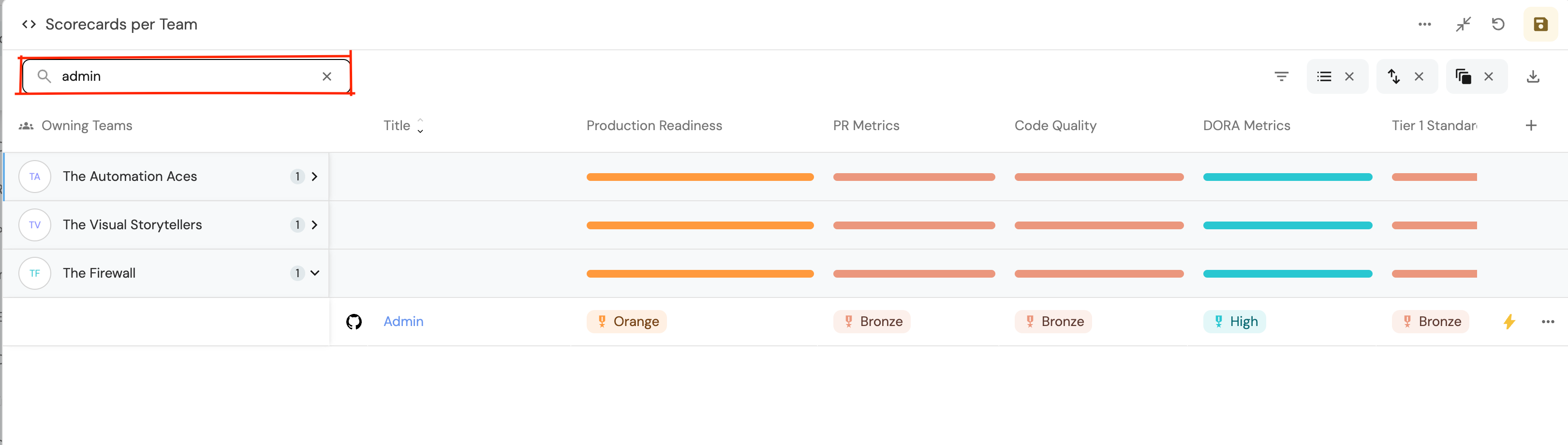 Port provides a free-text search option on tables. This will search all of the entities' properties and display the entities that match the query.
