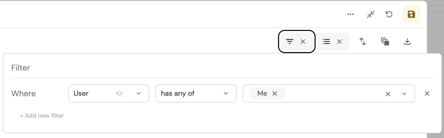 By using the Me filter you will only see entities that belong to the logged-in user.