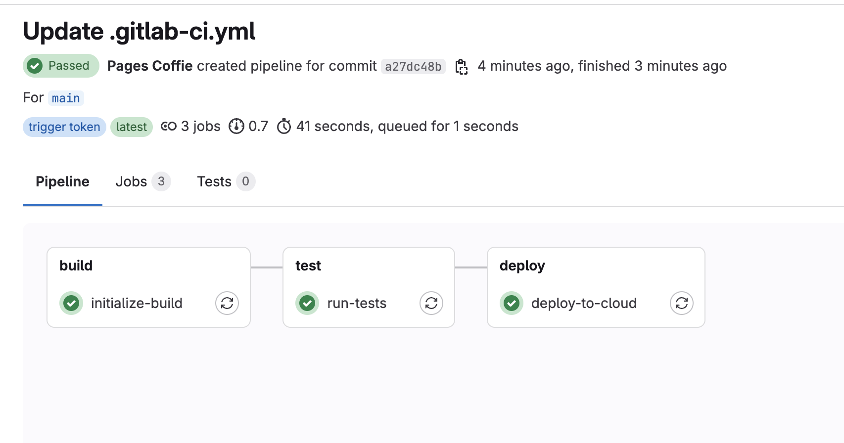 A GitLab pipeline will be triggered but will fail on the test stage due to not meeting coverage threshold