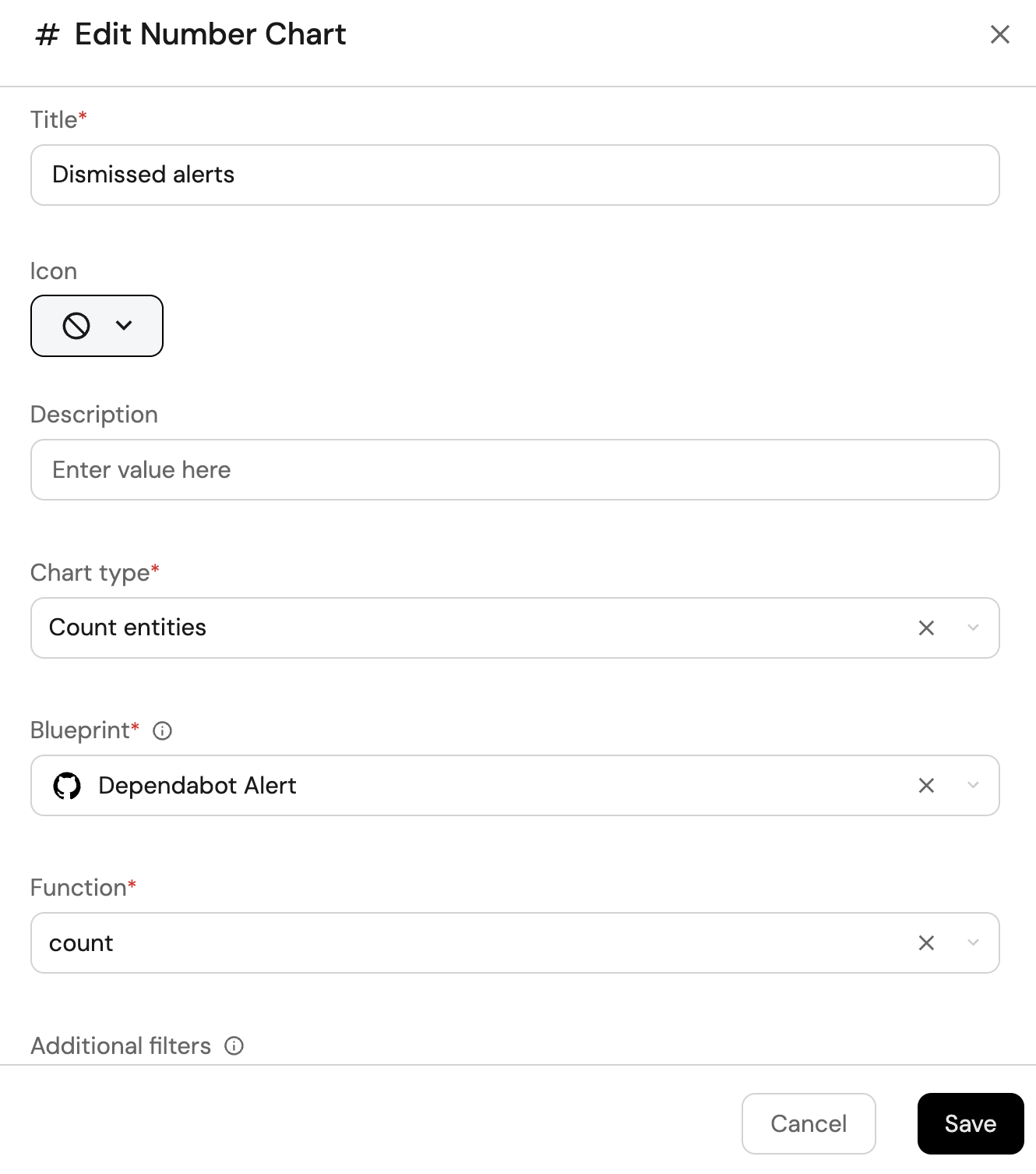 Count entitiesChart type and choose Dependabot Alert as the Blueprint. -