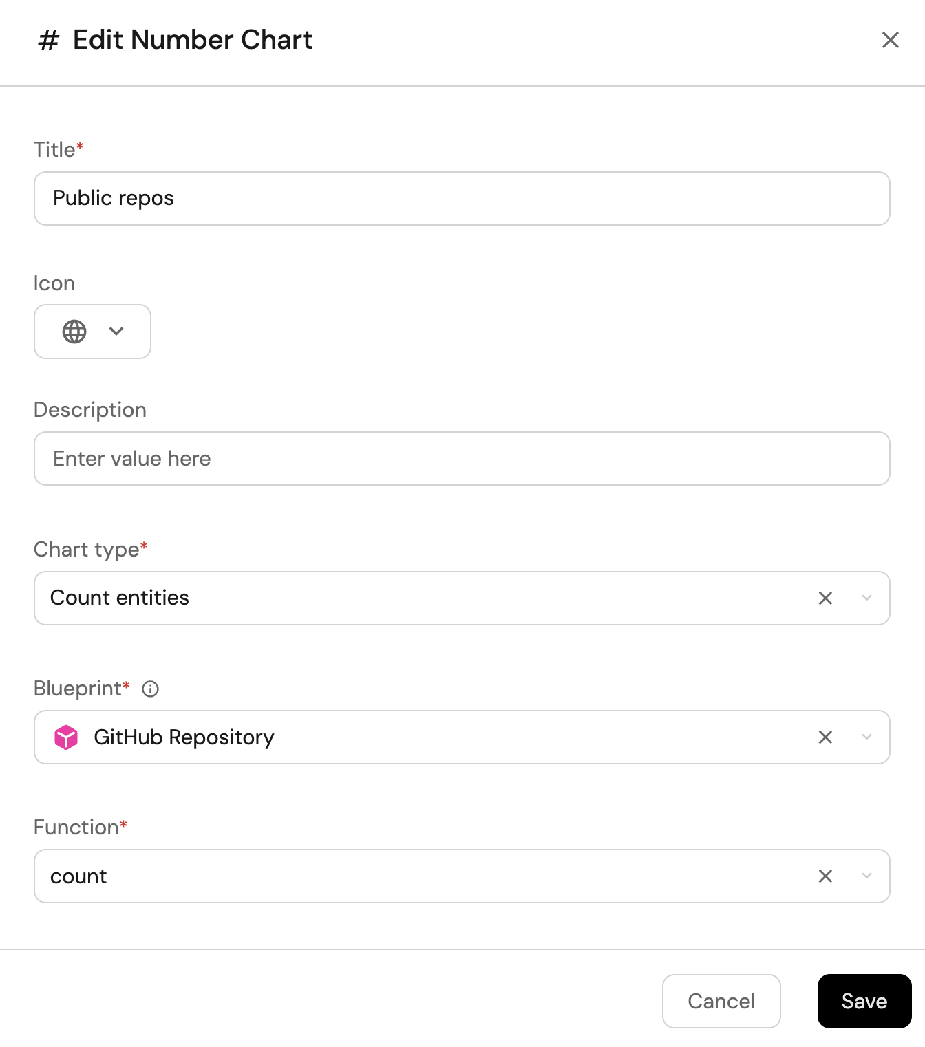 Count entitiesChart type and choose Repository as the Blueprint. -