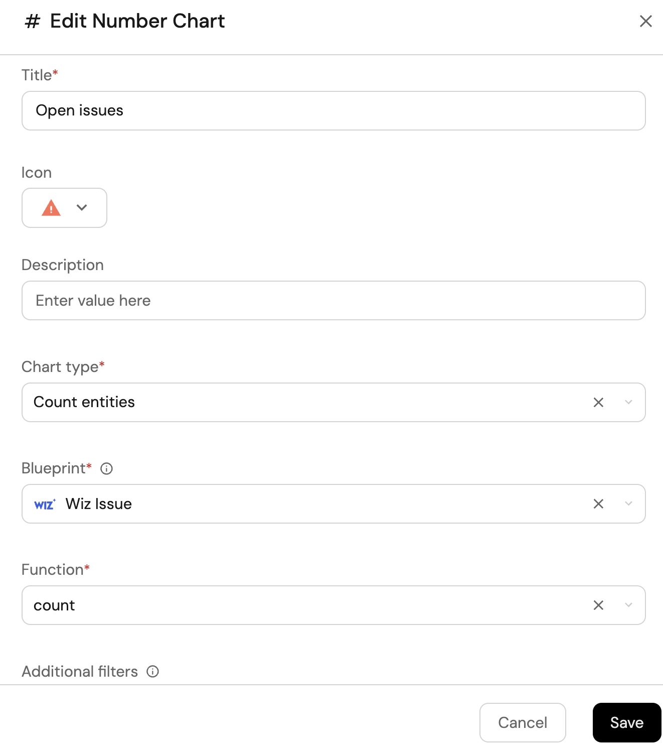 Count entitiesChart type and choose Wiz Issue as the Blueprint. -