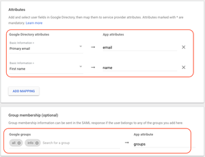 Google membership (optional): This mapping is only relevant if you wish to pass groups to Port.